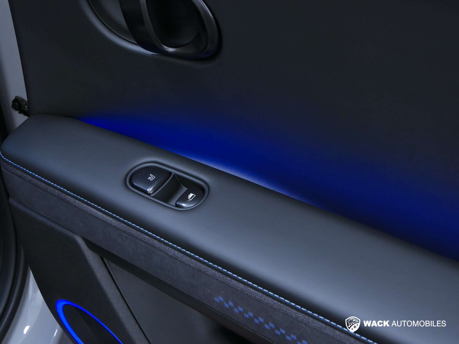 Revetement de tableau de bord et contre-portes en similicuir avec surpiqures bleu performance