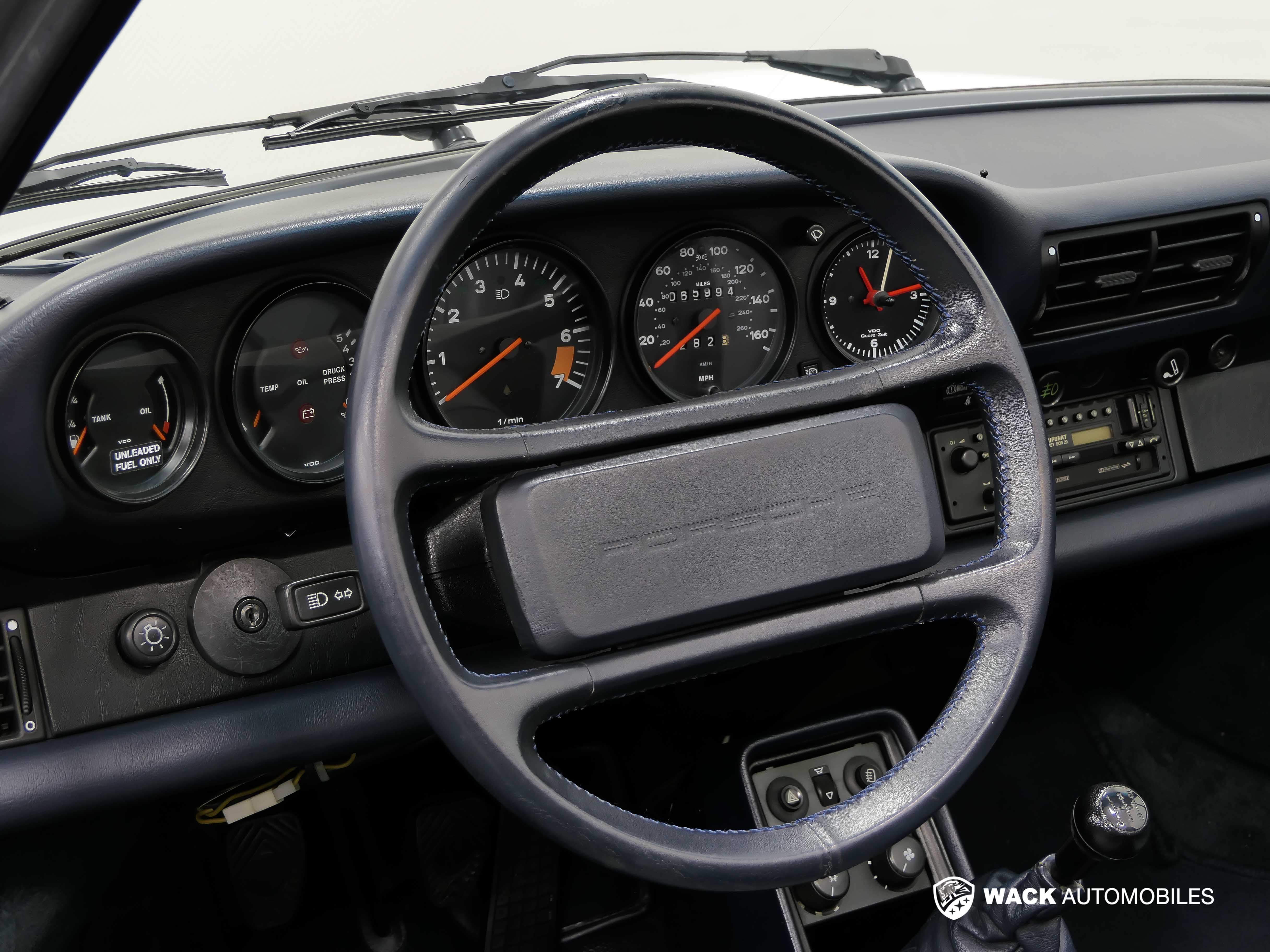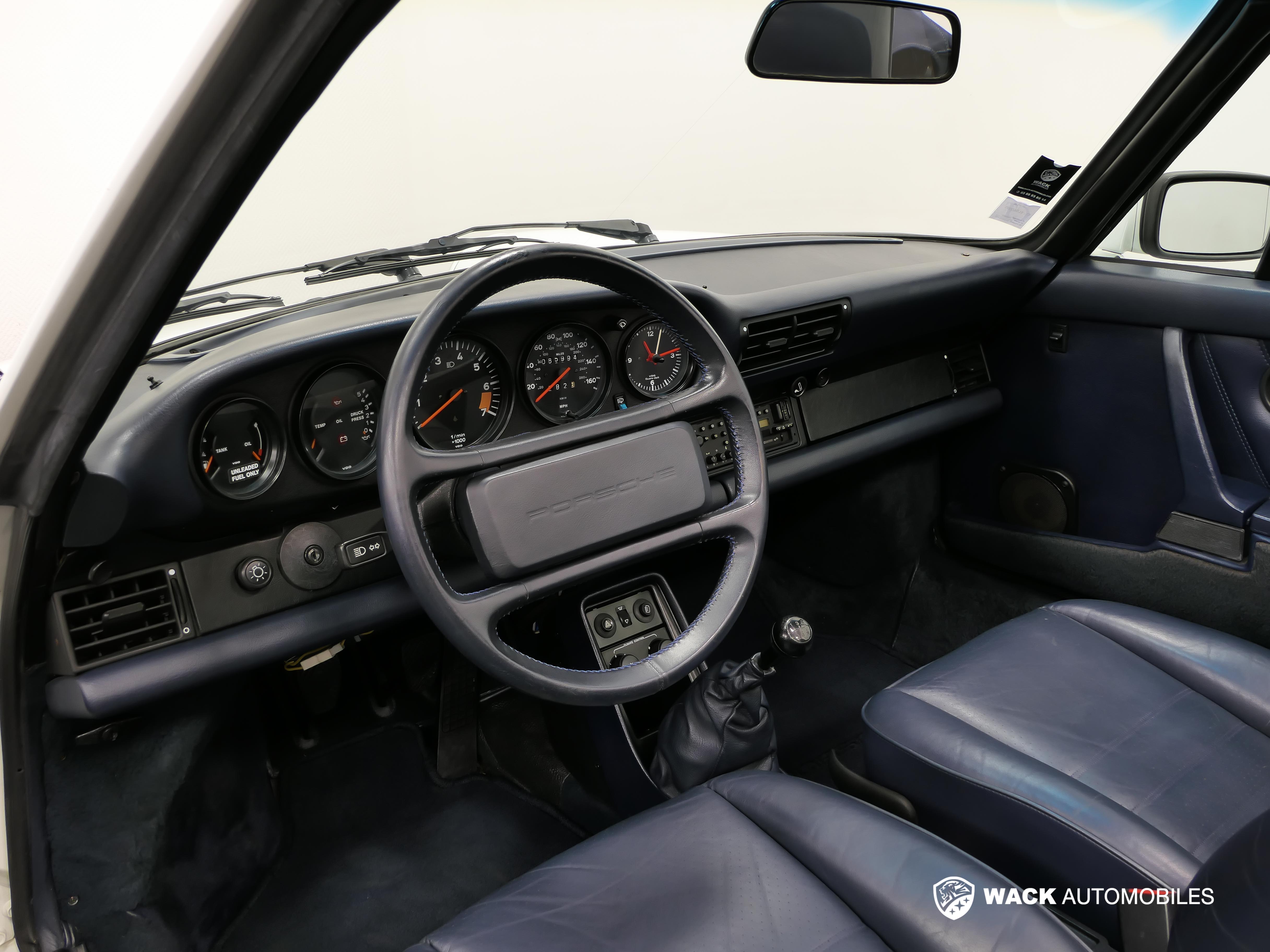 EXCELLENT ÉTAT D'ORIGINE - FAIBLE KILOMÉTRAGE - SUPERBE CONFIGURATION DE COULEURS - RARE A LA VENTE - La Porsche 911 3.2L est une icône de l'industrie automobile, et le modèle dit série "G" représente la dernière génération de 911 dite "à carrosserie classique". Posséder un cabriolet 911 de cette époque est un véritable symbole de prestige et de style intemporel. Comme l'indique son carnet d'entretien d'origine cette Porsche à été livrée à la concession de Bedford Ohio. Cette Porsche a été importée en Europe en 2011 et se trouve entre les mains d'un collectionneur Alsacien depuis 2014. Convertie aujourd'hui avec des boucliers Européens, ce modèle à fait l'objet d'un reportage de 6 pages dans le magazine RS hors série de l'été 2015. Outre sa présentation générale très soignée et ses nombreux frais récents, cette 911 vous enchantera avec ses équipements d'époque comprenant notamment : - Radio K7 Blaupunkt SQR 23 - Jantes 16" Fuchs blanches avec déport poli - Écussons centraux de couleurs - Capote manuelle Bleue - Couvre capote bleu - Sièges cuir semi électriques - Échappement inox DANSK - Saut de vent - Moquettes intérieur et de coffre en velours bleu - Cerclage des feux avant blanc - Volant cuir 4 branches - Rétroviseurs électriques - Travaux réalisés dans nos ateliers avant la vente : Remplacement des 4 pneus + Remplacement des 4 amortisseurs + Grande révision avec tous les filtres et les bougies + Vidange de la boite de vitesse - Purge des freins + Remplacement des soufflets de cardans - COÛT TOTAL CARTE GRISE ( département 67 ) = 421,76 € - LIVRAISON À DOMICILE POSSIBLE - VISITE VIRTUELLE PAR APPEL VISIO ENVISAGEABLE